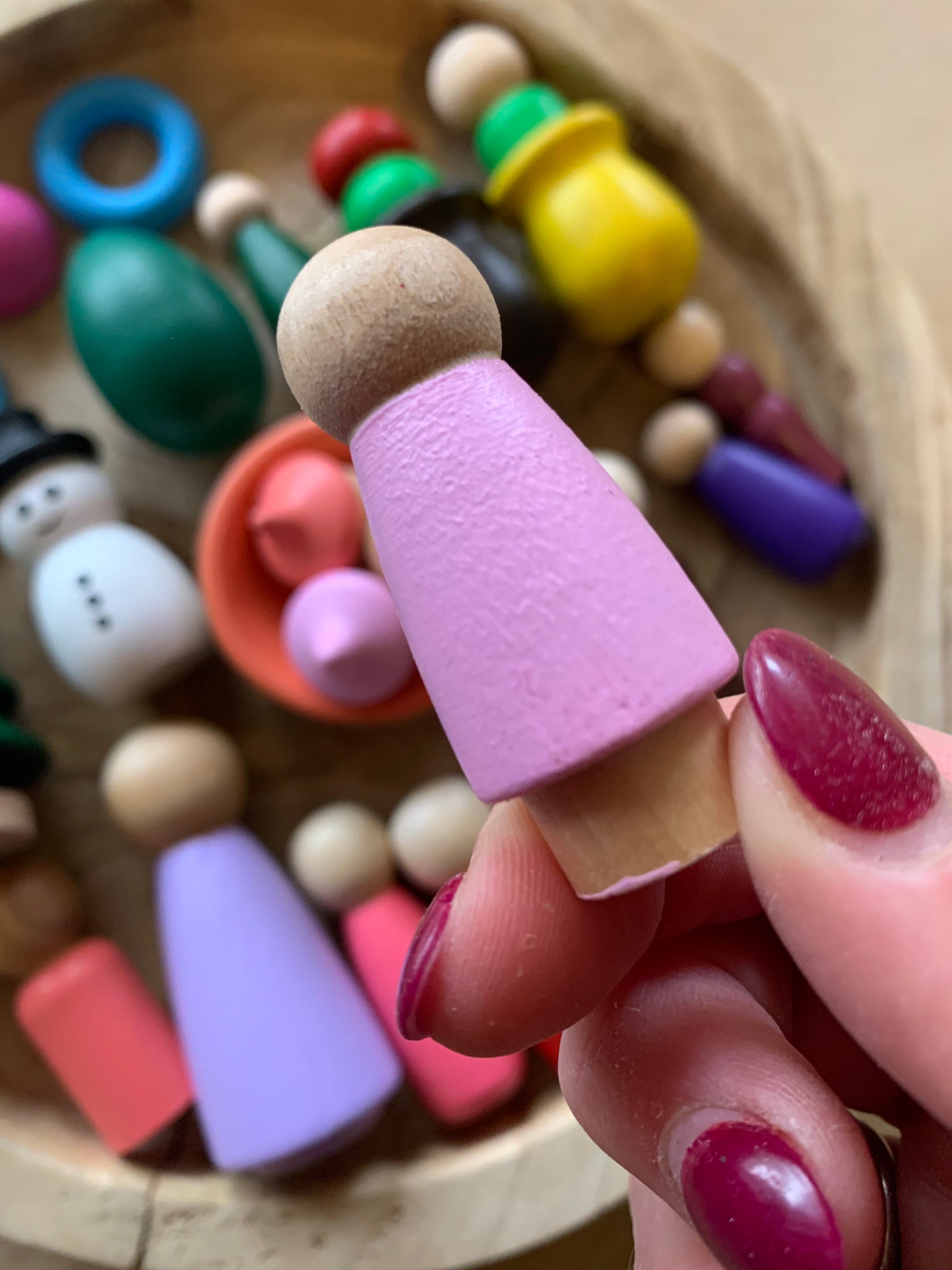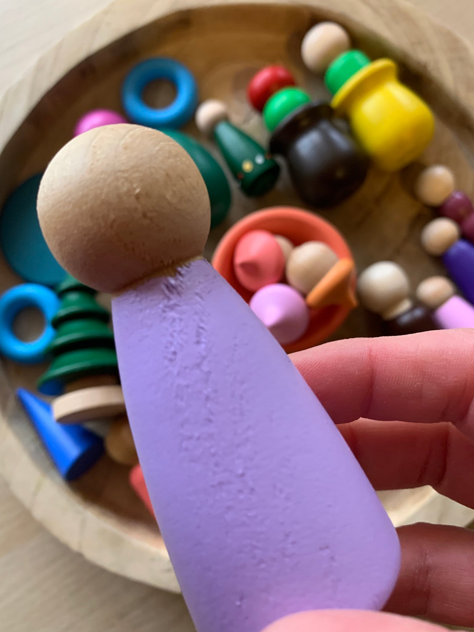This box is full of Peg Dolls and loose parts! Some have minor faults others are perfect and may have been painted with a sample colour!