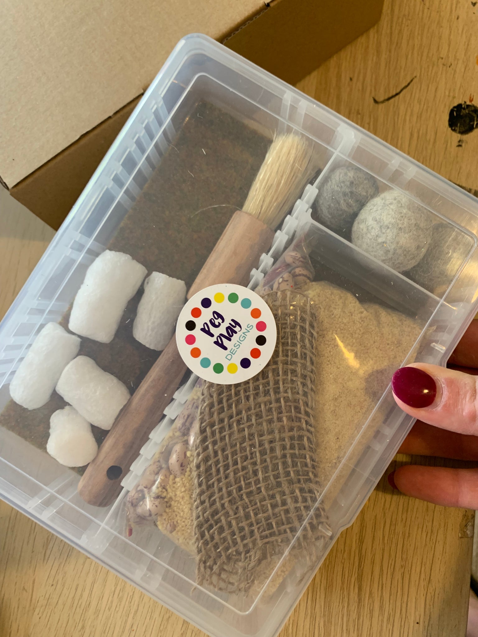 Our Sensory Boxes include everything you need to create a play tray for your children.